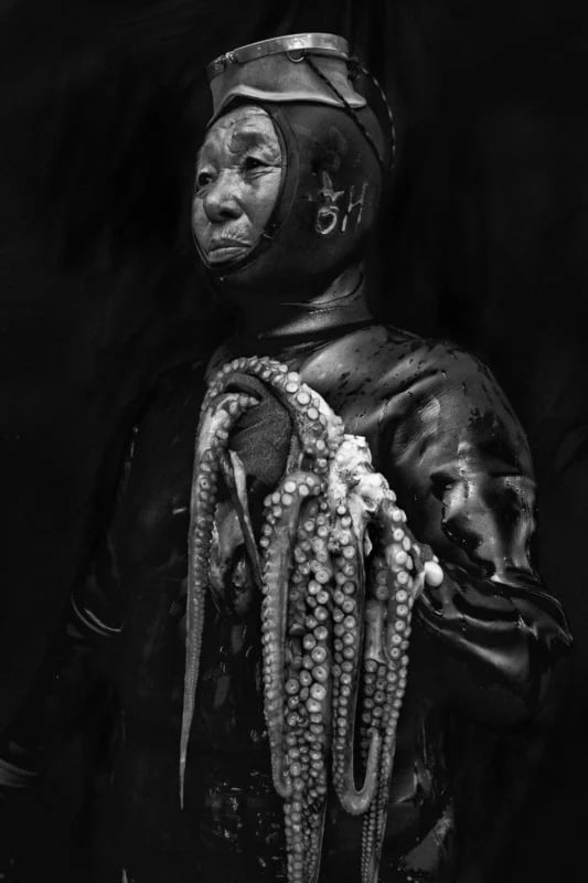 Sur l’île de Jeju, en Corée du Sud, les Haenyeo (ou "femmes de la mer") perpétuent une tradition similaire à celle des Ama japonaises. Ce groupe de femmes plongeuses, dont certaines ont plus de 70 ans, descend dans les eaux froides du détroit de Corée pour récolter des coquillages, des algues, des ormeaux et des concombres de mer. Leur mode de vie a façonné une société matriarcale unique, où les femmes sont les principales pourvoyeuses de nourriture et de revenus pour leurs familles.